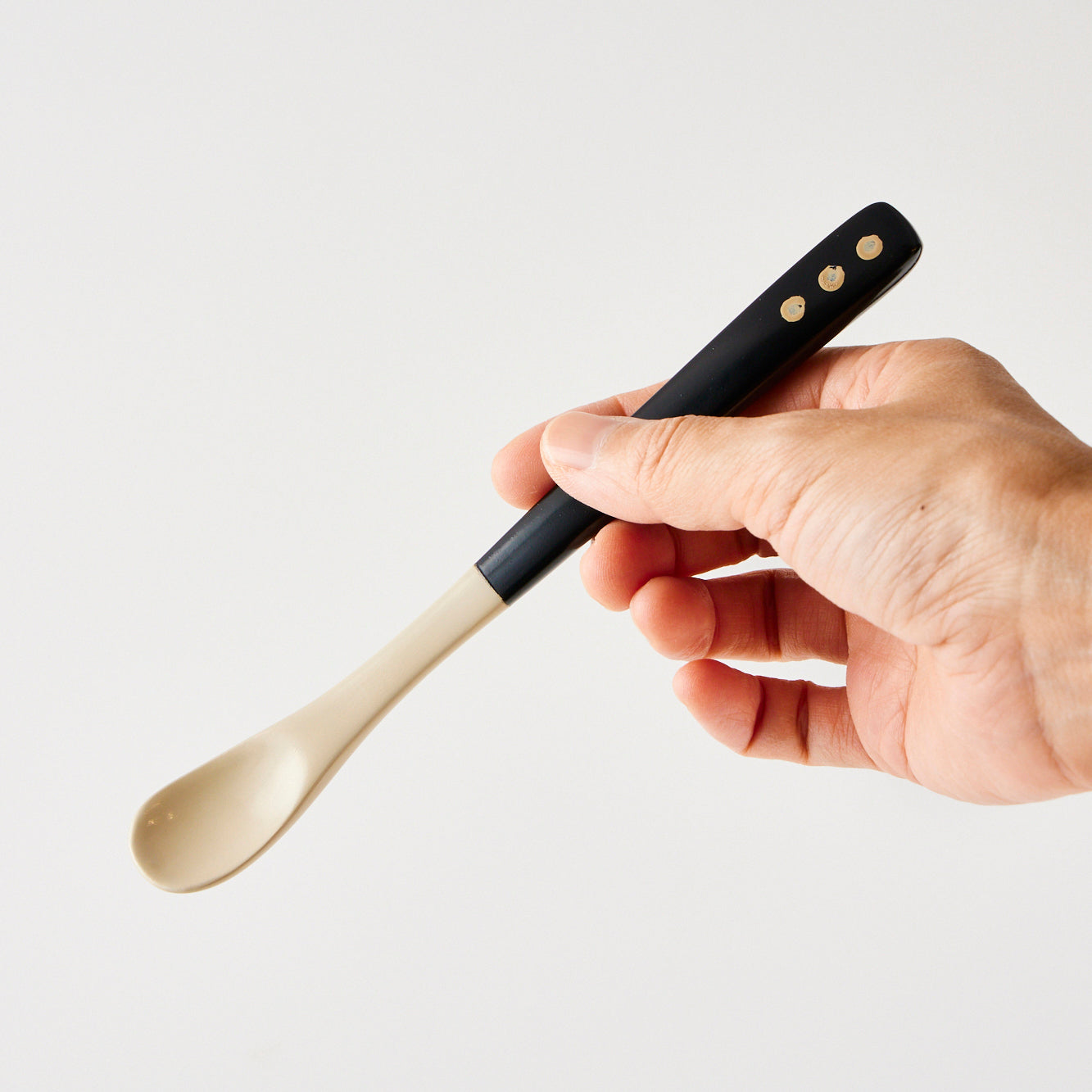 Dessert Spoon – Black & White Urushi Finish|Available at Ebisu Studio
