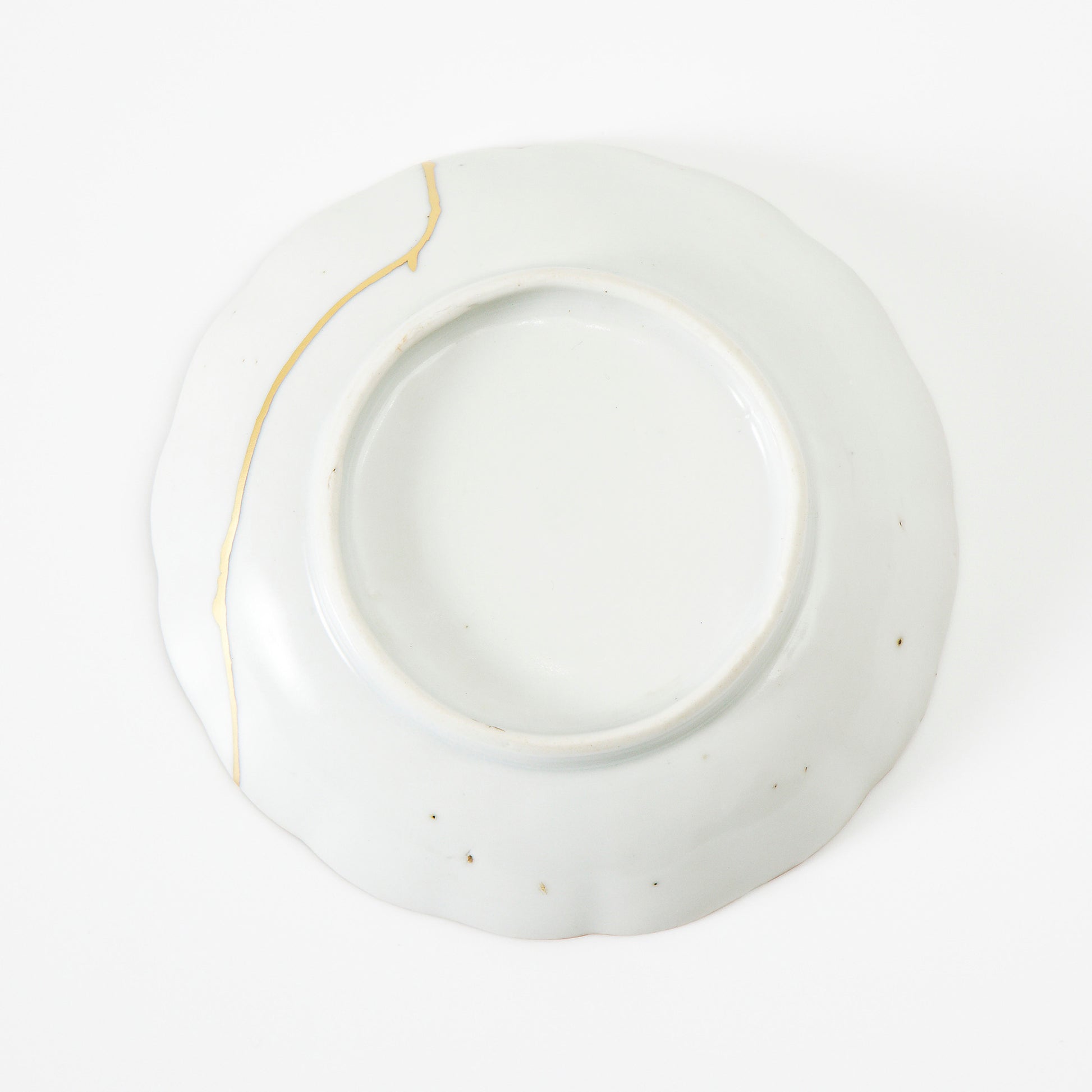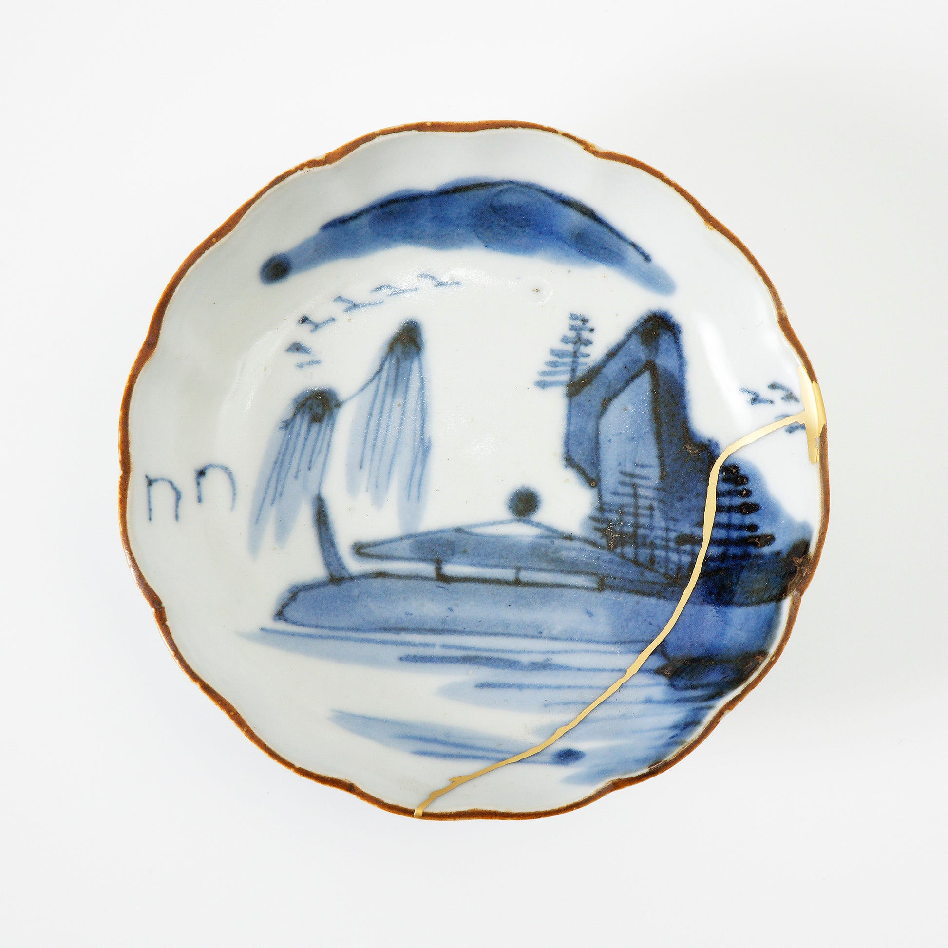 This broken porcelain plate was repaired using traditional kintsugi techniques. All the ingredients used for the repair process are natural and food safe.