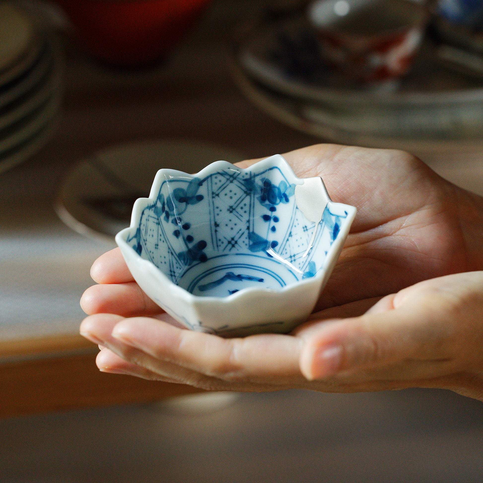 5. Please make sure that the parts repaired with urushi lacquer are not damaged by other plates and cups when storing your tableware on your cupboard shelves.