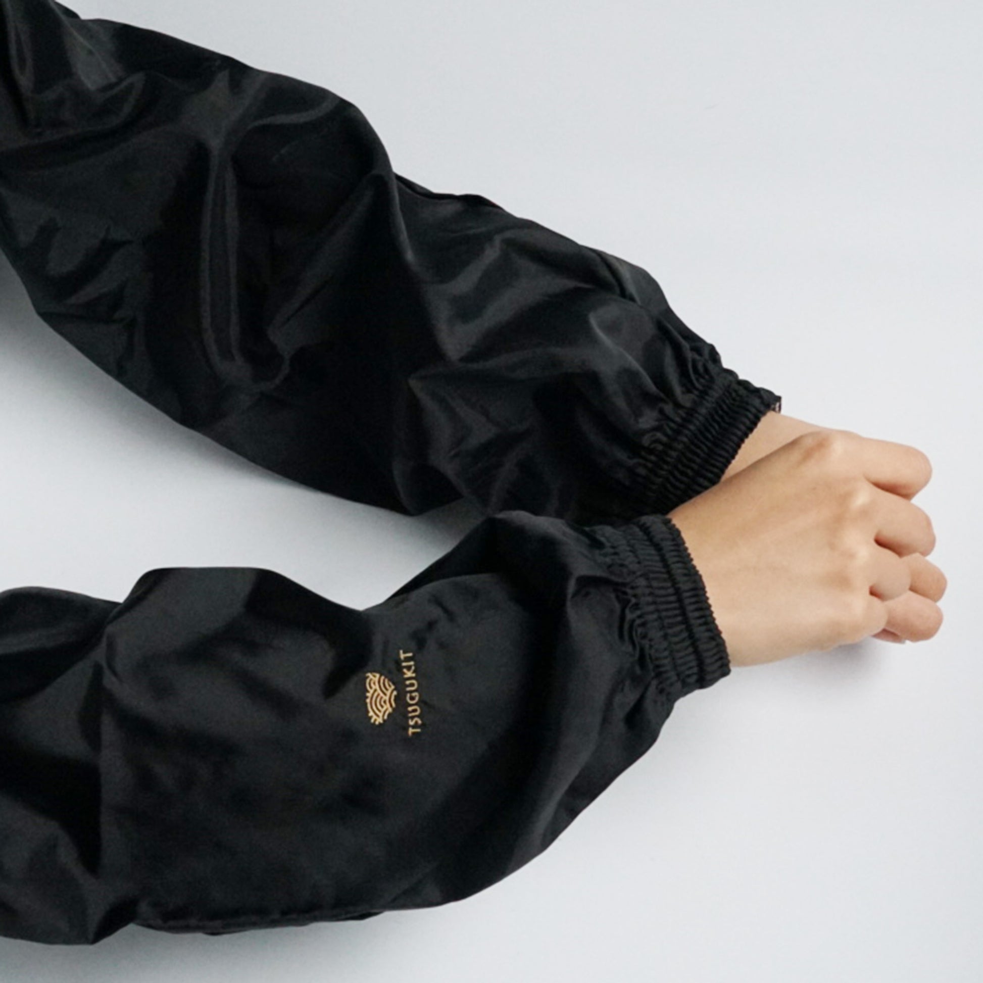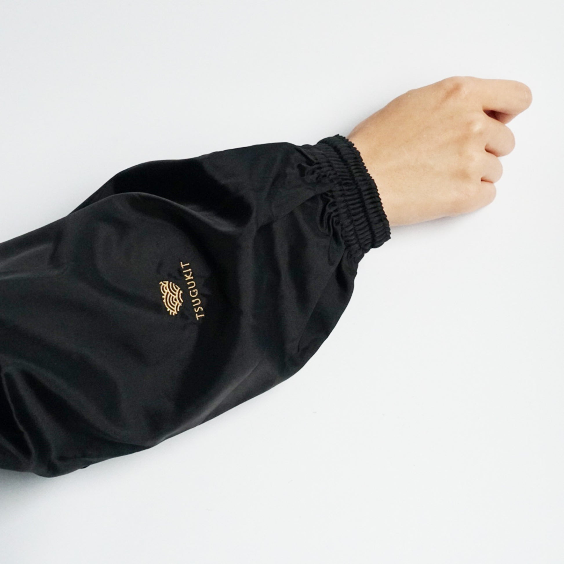 With this arm cover, you can protect your arms when doing traditional kintsugi with shorter sleeves, especially during the warmer months of the year. One of the arm covers is embroidered with Tsugu Tsugu's logo.