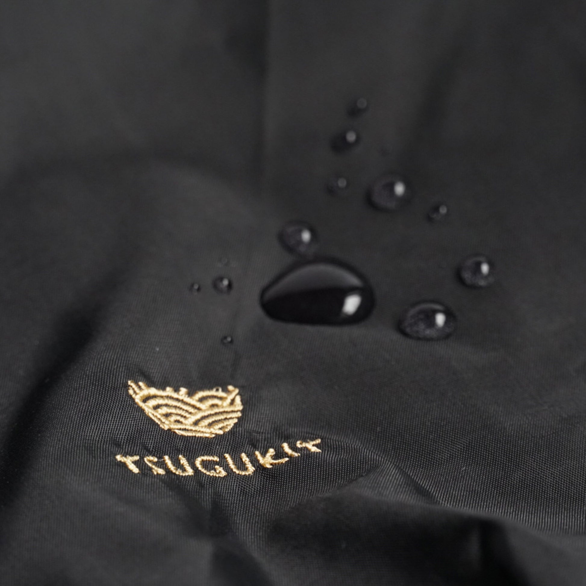 This product has a water-repellent coating but it is not waterproof. The water-repellent effect will gradually diminish by use and weaken after washing in water or dry cleaning.