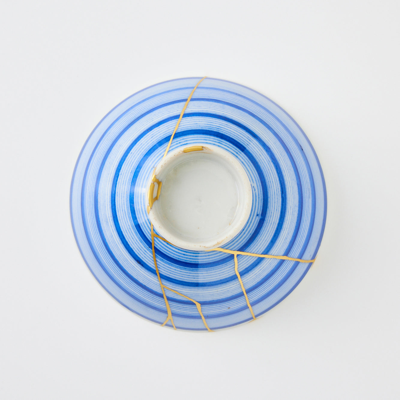 KINTSUGI - Auspicious Striped Rice Bowl with Golden Repair|Available at Asakusa Studio